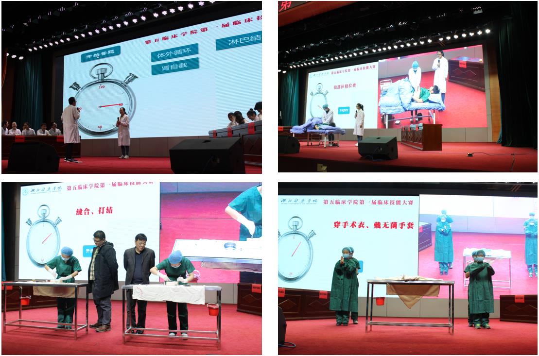 本次大赛分为锋芒毕露、眼疾手快、心有灵犀、神医妙手、医心二用五个环节,既考察了每位选手的临床基本知识,又体现了选手们的临场应变能力、团队协作能力、临床动手能力,紧张的眼疾手快、令人捧腹的心有灵犀环节把比赛气氛推向了高潮。在神医妙手环节中,教学办将六组选手的操作巧妙的串成一个临床情景剧,展现了急救-检查-治疗的全过程,既锻炼了选手们的动手能力,也让选手们了解到了整个临床处置过程。神医妙手环节结束后,附属随州医院大外科主任戢翰升教授对本次比赛的临床操作环节作了点评。