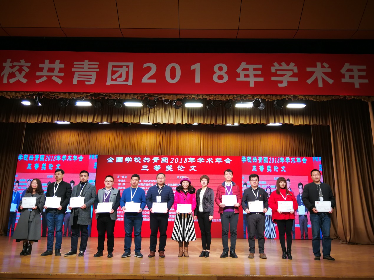 全国学校共青团研究中心学术指导委员会主任、清华大学林泰教授,中国高等教育学会副会长康凯,团中央学校部副部长李骥、宋来和廉思,中国青少年研究会常务副主任刘俊彦,教育部社科司科研处调研员段洪波等领导专家出席学术年会。bet28365365游戏陈静老师结合基层团学工作实际撰写的《浅析新时期高校班团一体化协同工作机制构建对策》从700余篇论文脱颖而出,荣获三等奖,受到表彰。