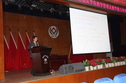 本次培训特别邀请湖北医药学院教务处李国华处长、刘涛副处长参加。李国华处长作了题为《怎样上好一堂课》、《教学管理的组织结构、基本任务、基本内容解读》的主题讲座,在《怎样上好一堂课》中,李处长结合现代学教育思想和先进的教育理念,生动地阐述了作为一名高校教师上好一堂课的基本要求,以及课堂教学的基本原则、基本环节和方法,重点讲解了如何优化课堂教学;在《教学管理的组织结构、基本任务、基本内容解读》中分别从教学运行管理、教学基本建设、教学改革与研究、实习管理四个方面详细解读学校、二级学院、教研室实验室的三级教学管理职能。