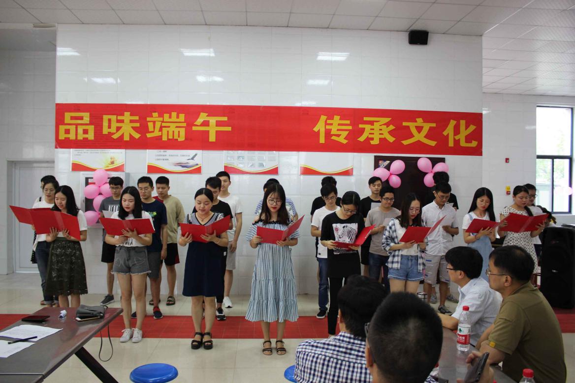 在“端午赛诗会”环节,来自学院各班级的16组同学依次上台朗诵诗歌,同学们热情洋溢、声情并茂的朗诵赢得了场下观众热烈的掌声。